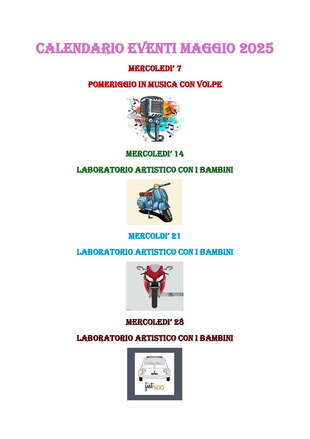 Calendario eventi Maggio 2025